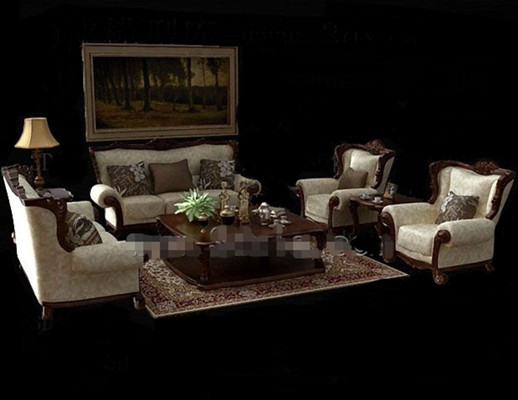 Description:European-style wooden fabric sofa combination