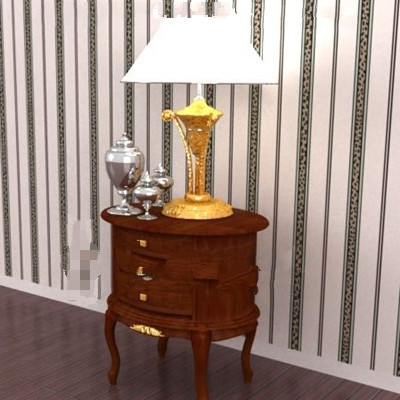 Description:Wood brown round bedside cabinet