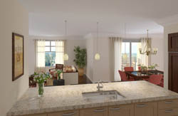 Sun's interior space, dining and living room, European style