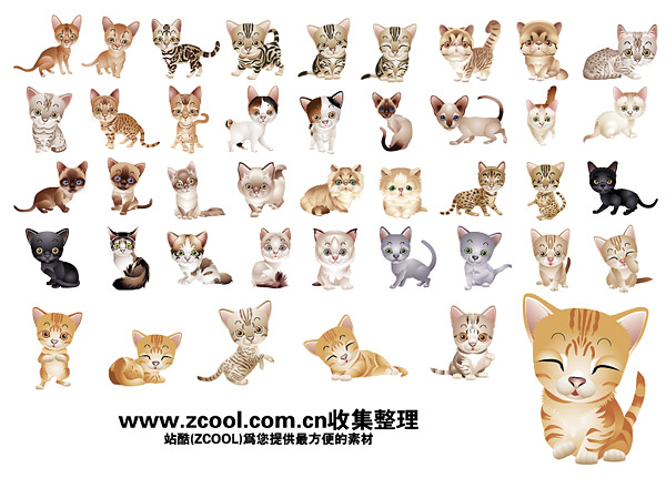 Description:40 version of a variety of cute little kitty Vector material