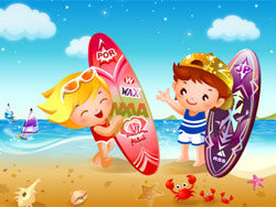 Children's beach surfing vector material
