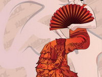 Woman holding folding fan Vector material