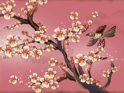 KeyWords:Birds, pomegranates, branches,