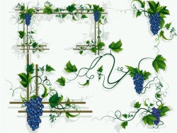 Grapes, vines, grape leaves border vector material